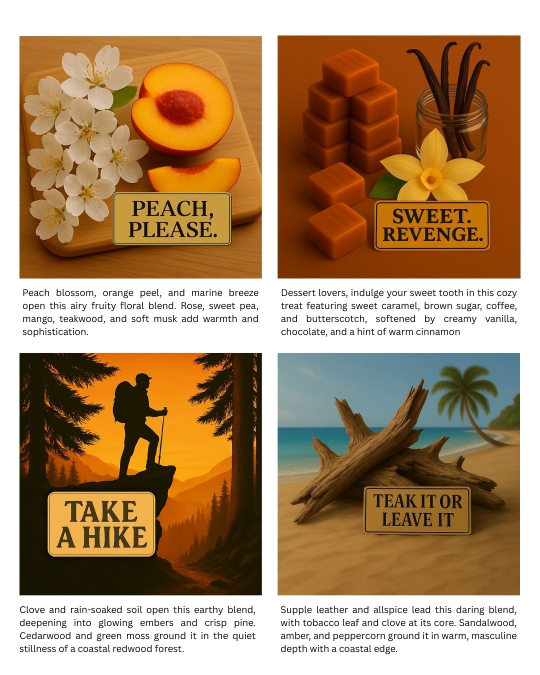 Made with U.S sourced soy wax and fragrances. Store in cool or room temperature environments, out of direct sunlight.